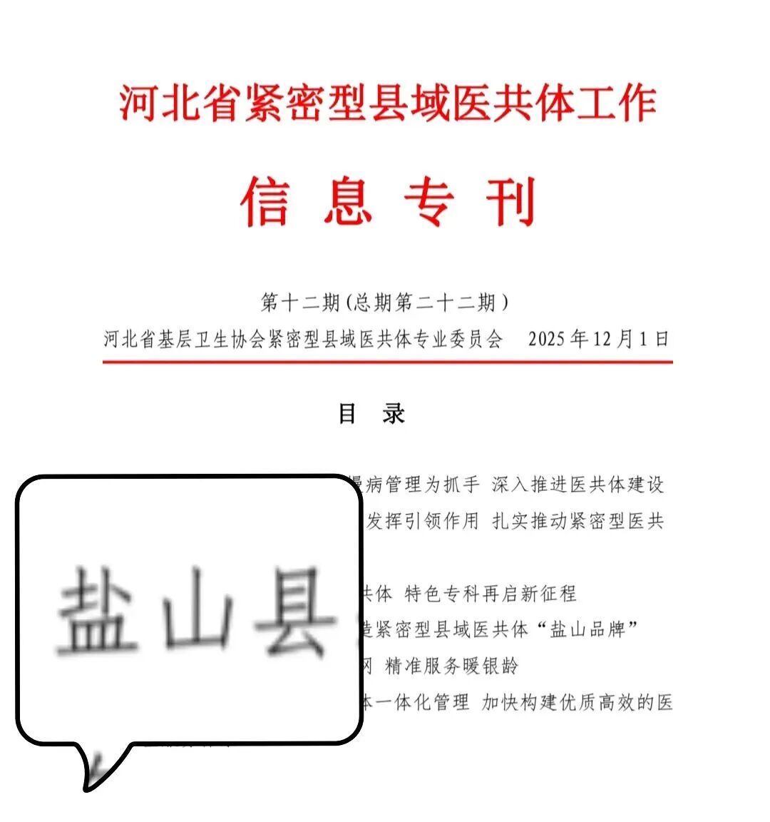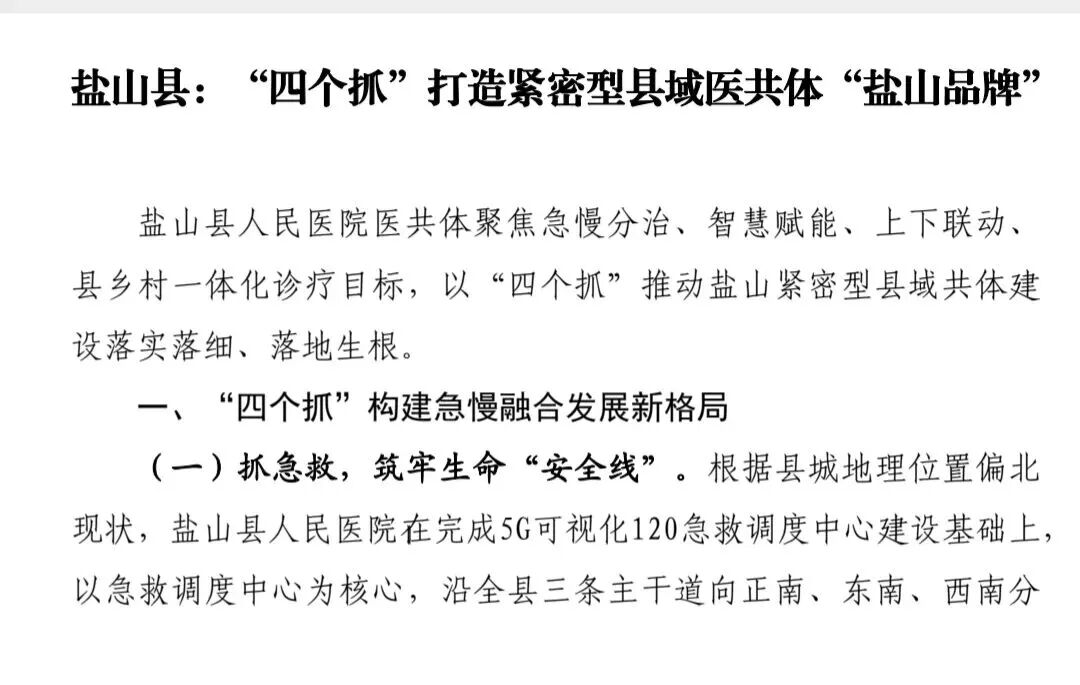 河北省基层卫生协会紧密型县域医共体专业委员会刊发《盐山县:“四个抓”打造紧密型县域医共体“盐山品牌”》